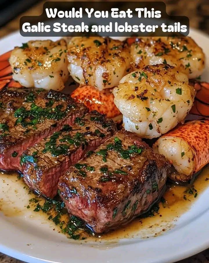 Would you eat this Garlic Lobster Tail and Steak Feast?