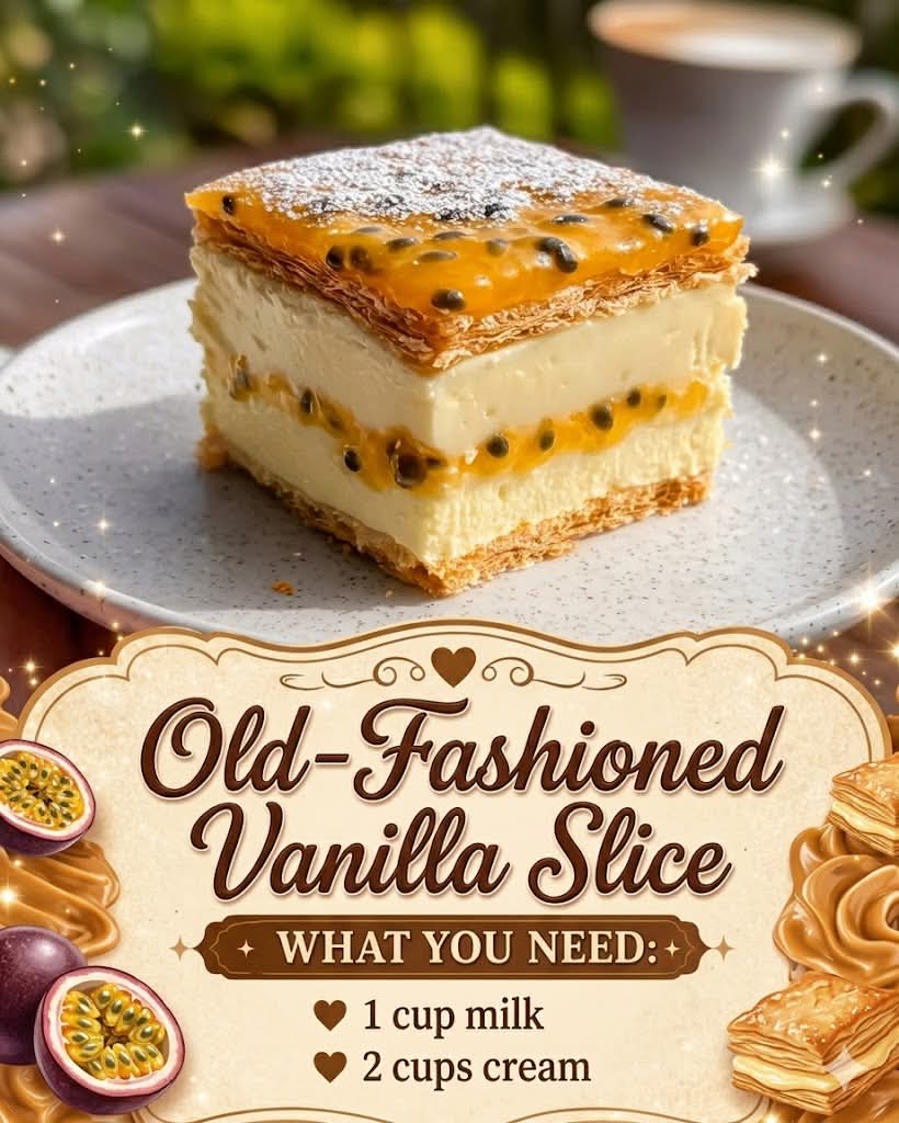 Old-Fashioned Vanilla Slice is proof that simplicity can be extraordinary. With just milk, cream, and sugar, you can create a dessert that feels luxurious, nostalgic, and deeply satisfying. It’s the kind of recipe that never goes out of style—passed from kitchen to kitchen, always bringing smiles.