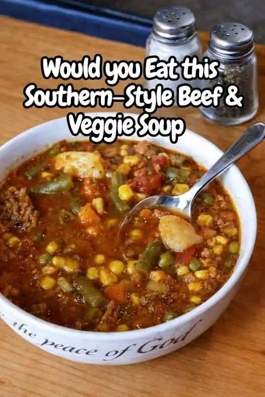 Southern-Style Beef & Veggie Soup is more than a recipe—it’s a legacy of turning simple ingredients into gold. Every spoonful tells a story of resilience, family, and the rich soil of the South. Whether you serve it with a wedge of cornbread or a side of sweet tea, this soup delivers warmth, nutrition, and that unmistakable “made with love” taste.