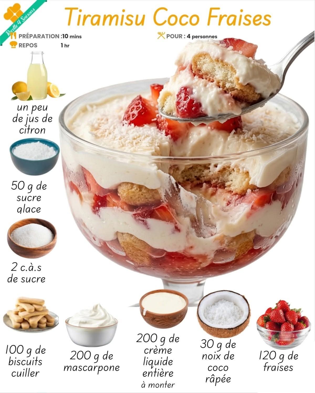 Strawberry Coconut Tiramisu is more than just a dessertβ€”it’s a refreshing experience. It blends creamy mascarpone, juicy strawberries, soft ladyfingers, and tropical coconut into a perfect harmony of flavors. Whether you are making it for guests or treating yourself, this no-bake dessert guarantees satisfaction in every bite.