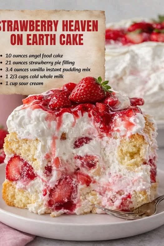 The combination of angel food cake and whipped cream became popular in church gatherings and family potlucks, where easy, large-batch desserts were preferred. Over time, strawberries were added to give freshness and color, creating the modern โ€œHeaven on Earth Cakeโ€ we know today.