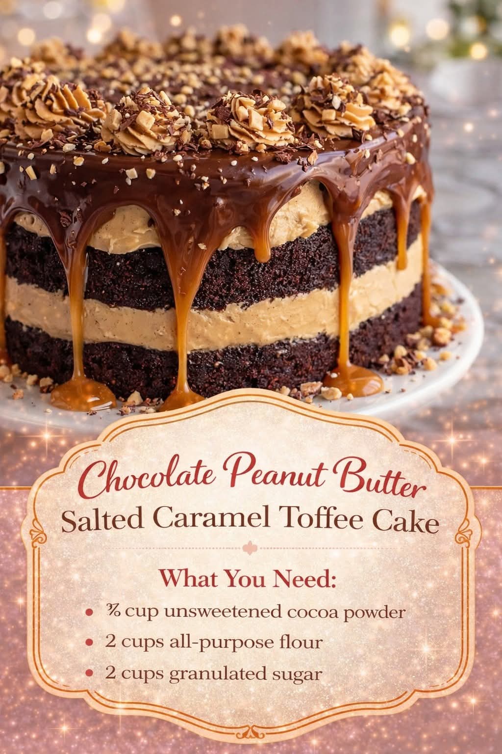 🍫🥜 Chocolate Peanut Butter Salted Caramel Toffee Cake 🍰✨