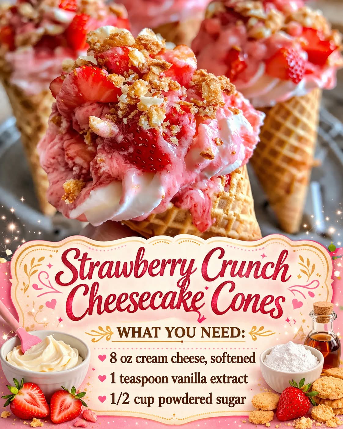 🍓 Strawberry Crunch Cheesecake Cones 🍦✨