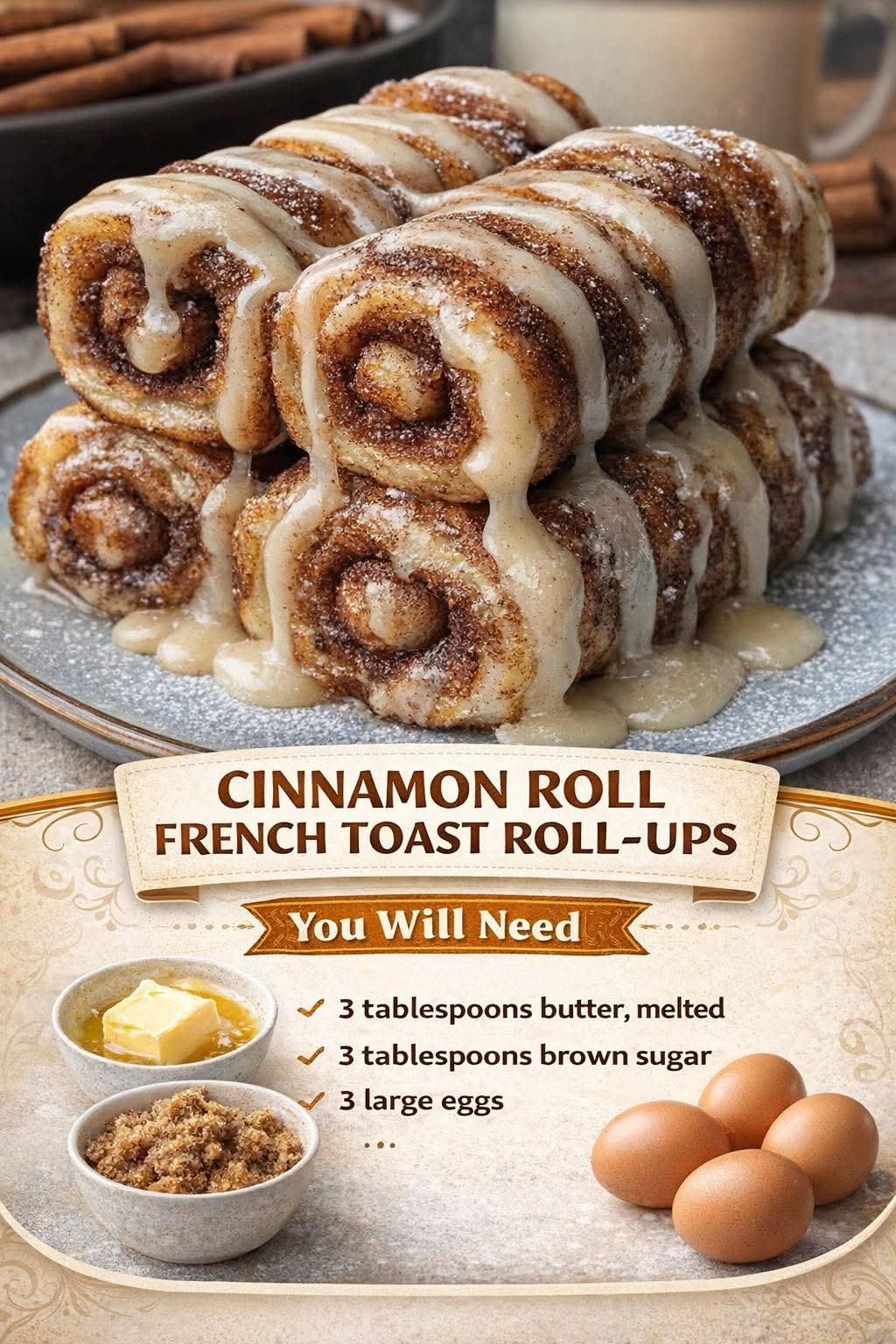 This recipe is inspired by two classic breakfast favorites: cinnamon rolls, believed to have originated in Northern Europe (especially Sweden), and French toast, which dates back to ancient times when stale bread was soaked in eggs and milk to avoid waste. Combining these ideas creates a modern, fun twist that’s perfect for today’s quick kitchens.