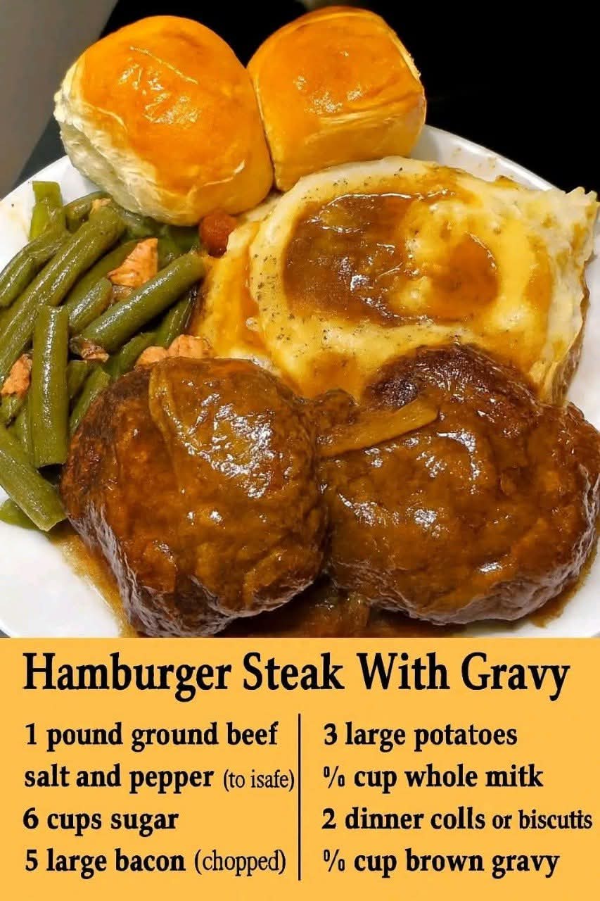 Hamburger steak with gravy is a classic comfort food that bridges the gap between a juicy burger and a traditional steak dinner. Popular in Southern and Japanese cuisine (where it’s known as Hambāgu), this dish transforms simple ground beef into a tender, flavorful patty smothered in a rich, savory gravy. It’s economical, easy to make, and deeply satisfying – perfect for busy weeknights or a cozy Sunday supper.