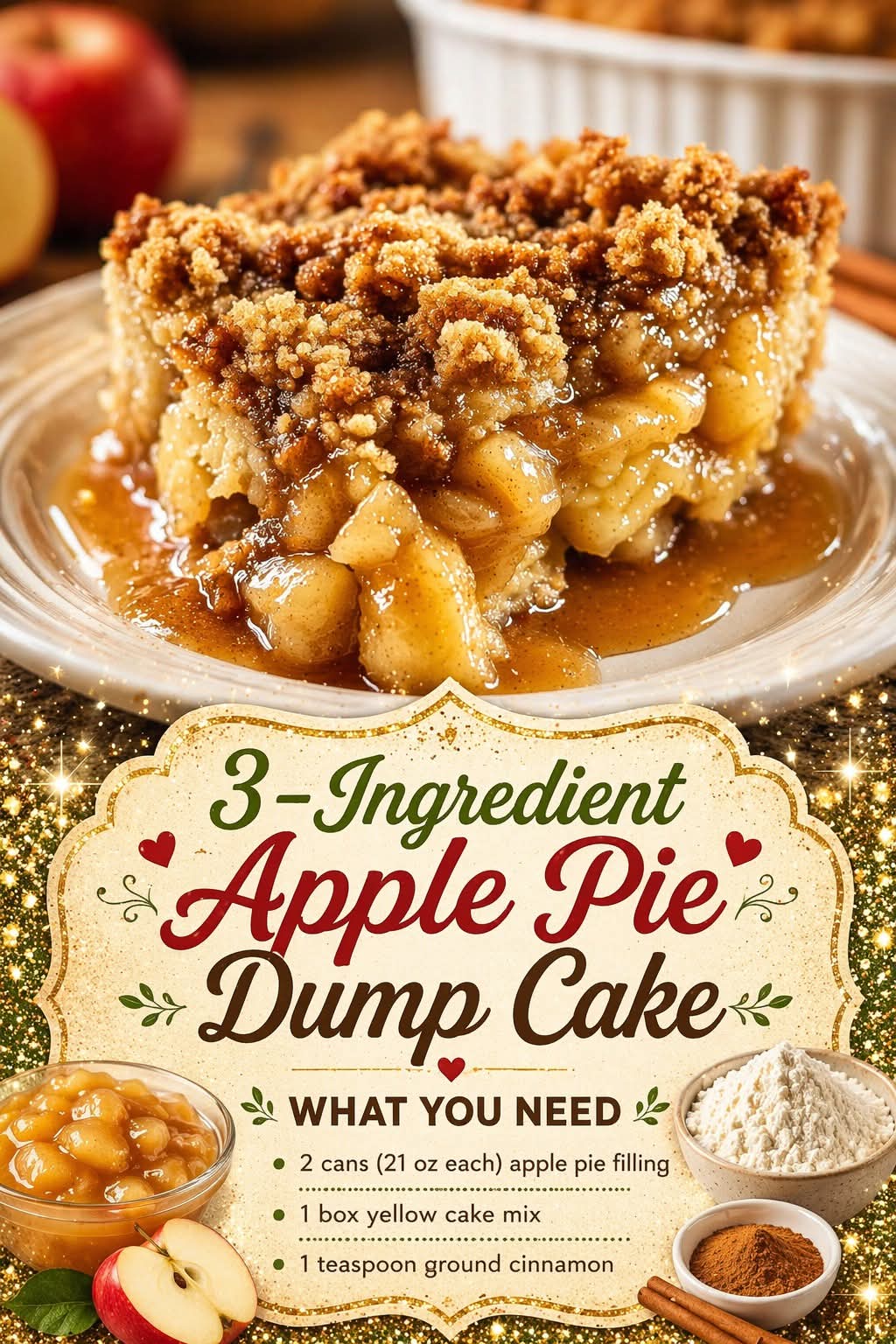 If you love warm, sweet desserts but donât want to spend hours baking, this Apple Pie Dump Cake is your perfect match. With just three simple ingredients, you get a golden, buttery topping over rich, spiced applesâlike a cross between an apple pie and a crumble. Itâs the kind of dessert that fills your kitchen with comforting aromas and brings everyone running to the table.