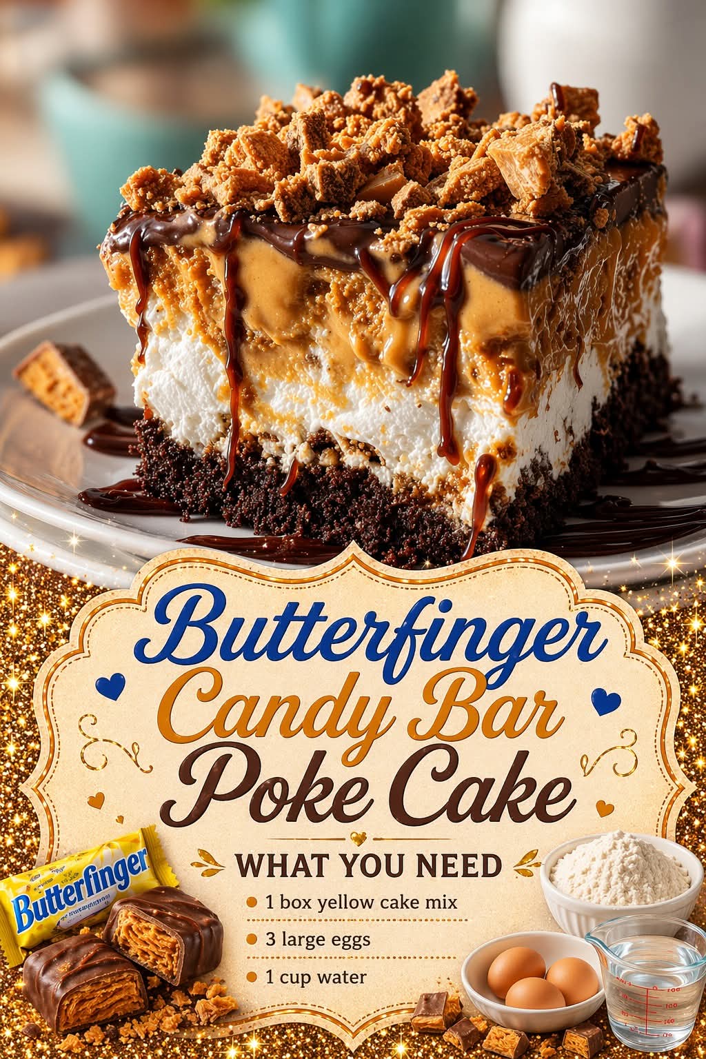 🍫🥜 Butterfinger Candy Bar Poke Cake