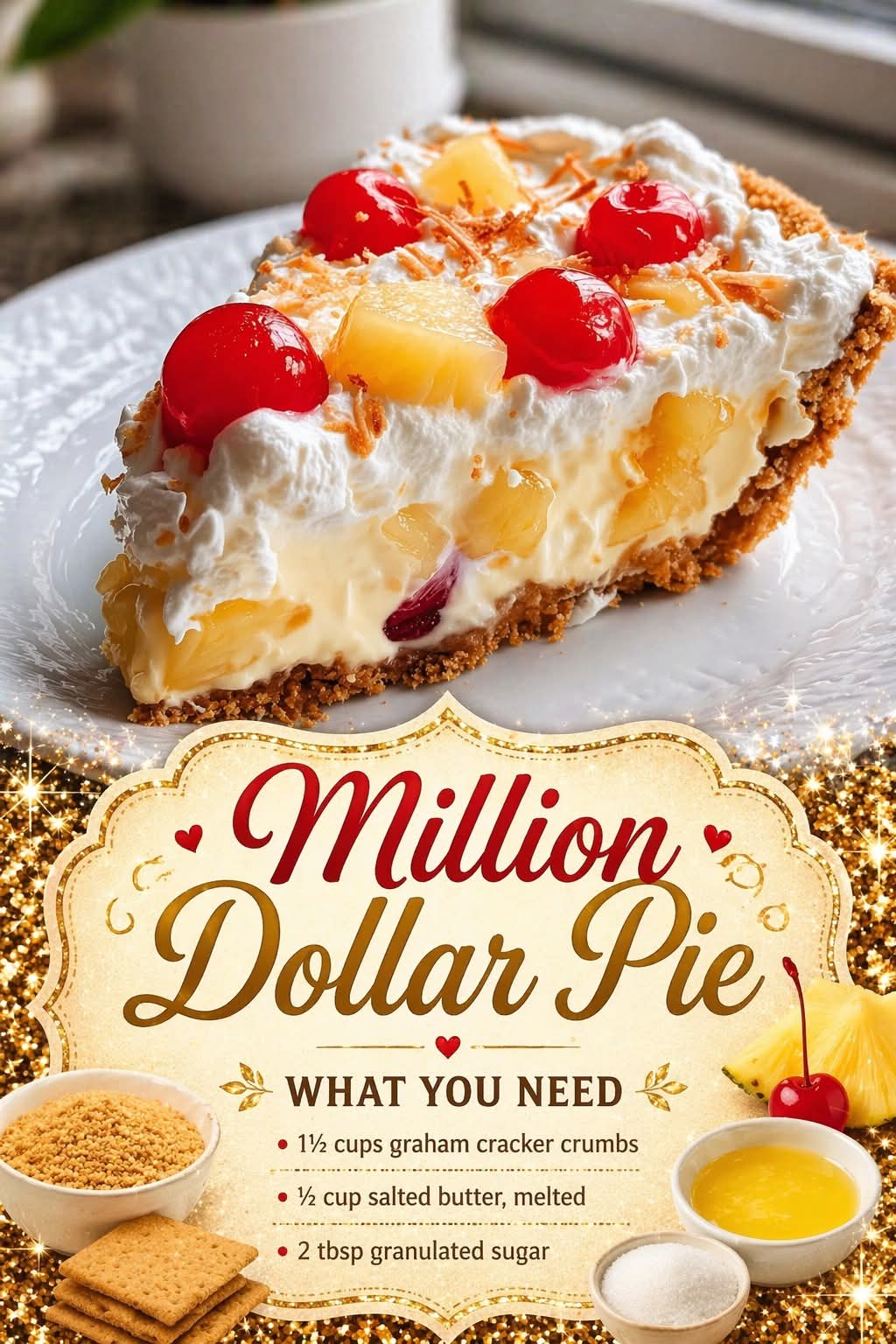 Million Dollar Pie is a classic Southern-style dessert that combines tropical flavors, creamy texture, and a buttery crust into one irresistible treat. It’s called “million dollar” because it tastes luxurious while being incredibly simple and affordable to make. With sweet pineapple, rich cream, and a hint of citrus, this pie is perfect for warm days, family gatherings, or whenever you want a dessert that feels special without much effort.