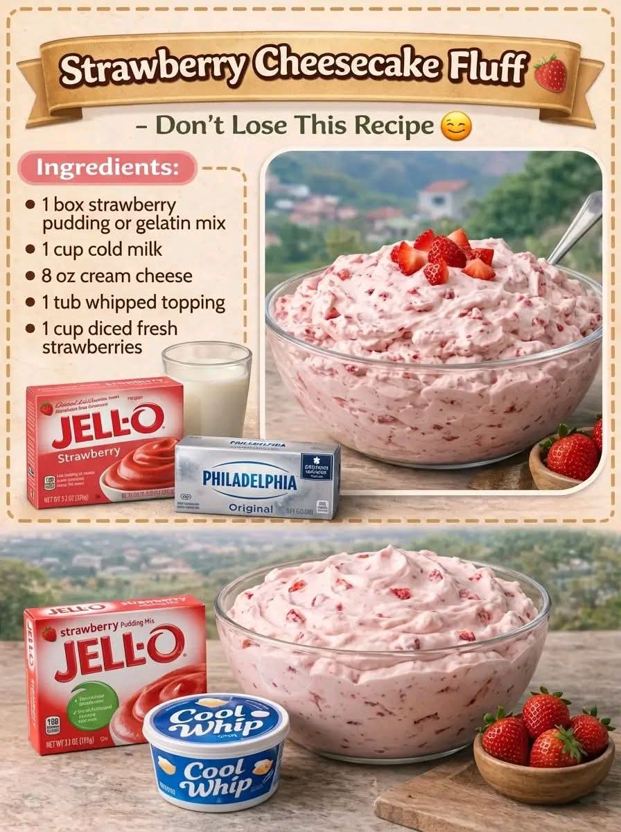 Strawberry Cheesecake Fluff is proof that simple ingredients can create something truly special. With its creamy texture, fruity sweetness, and airy lightness, it brings together everything people love about cheesecake—without the baking hassle.
