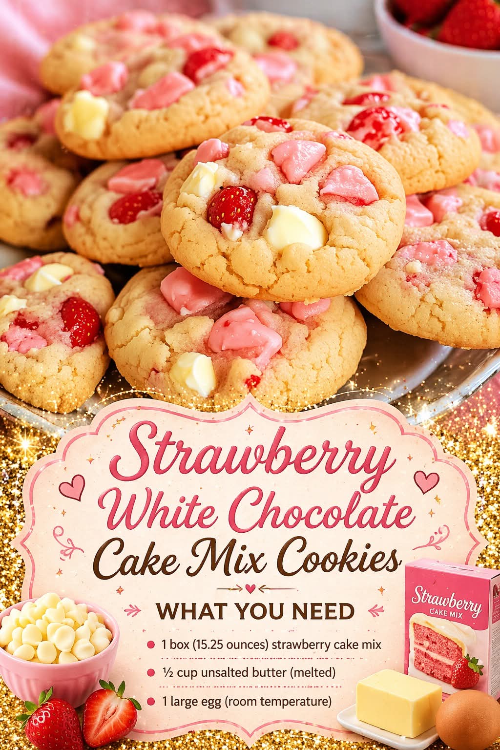 Here’s a full, rich guide to making your Strawberry White Chocolate Cake Mix Cookies—soft, chewy, and bursting with sweet berry flavor and creamy chocolate 🍓🍪