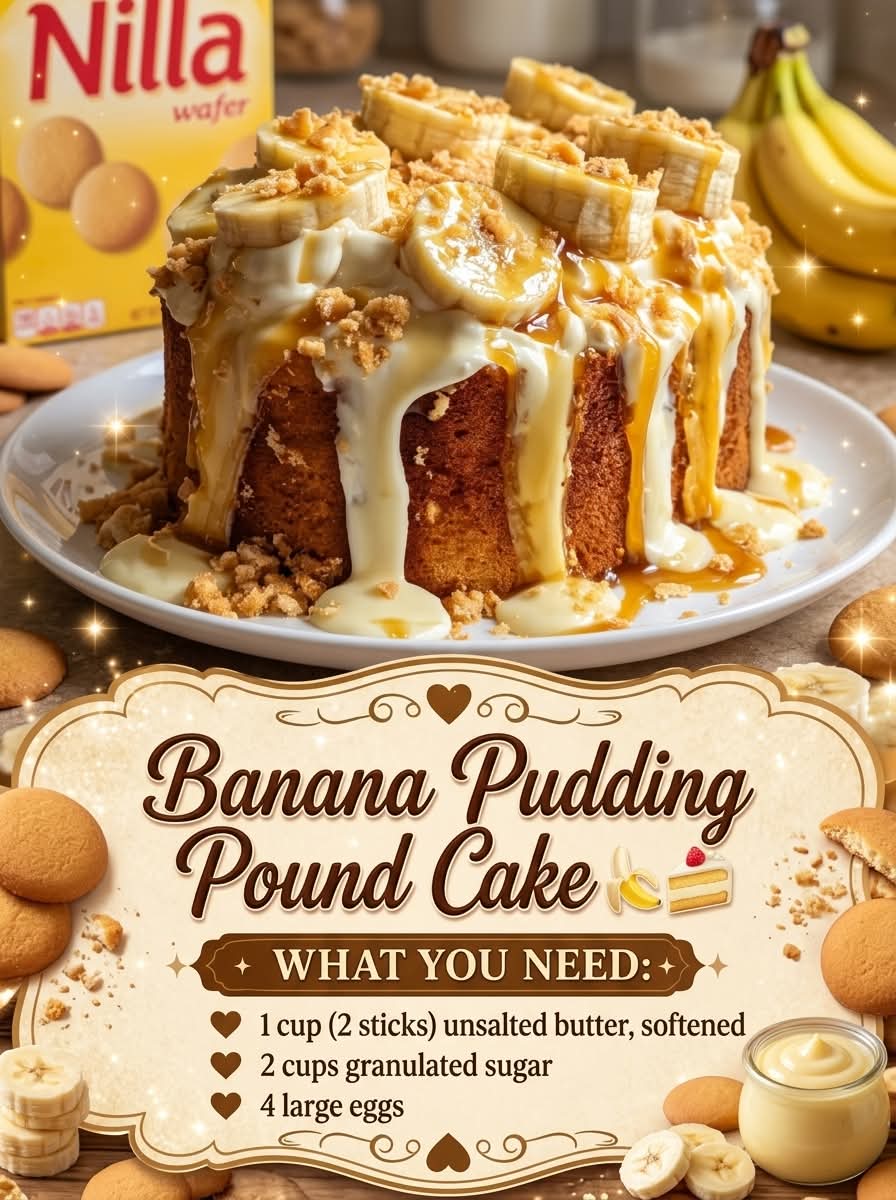🍌🍰 Banana Pudding Pound Cake – Ultra Moist Southern-Inspired Dessert