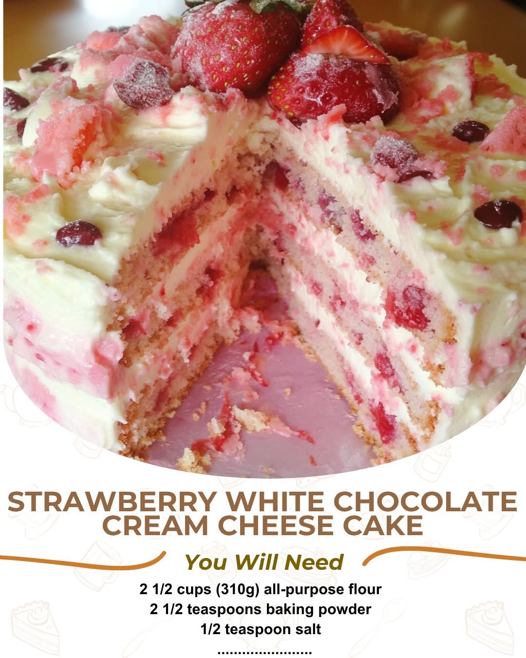 This cake is more than just dessert—it’s an experience. The harmony of strawberries, white chocolate, and cream cheese creates a flavor that’s rich yet refreshing. Whether for birthdays, gatherings, or simply treating yourself, it’s guaranteed to impress.