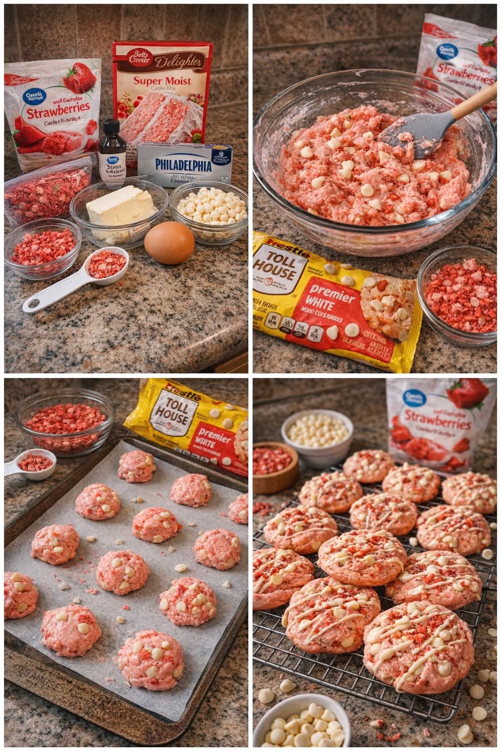 🍓✨ White Chocolate Strawberry Cheesecake Cookies ✨🍪