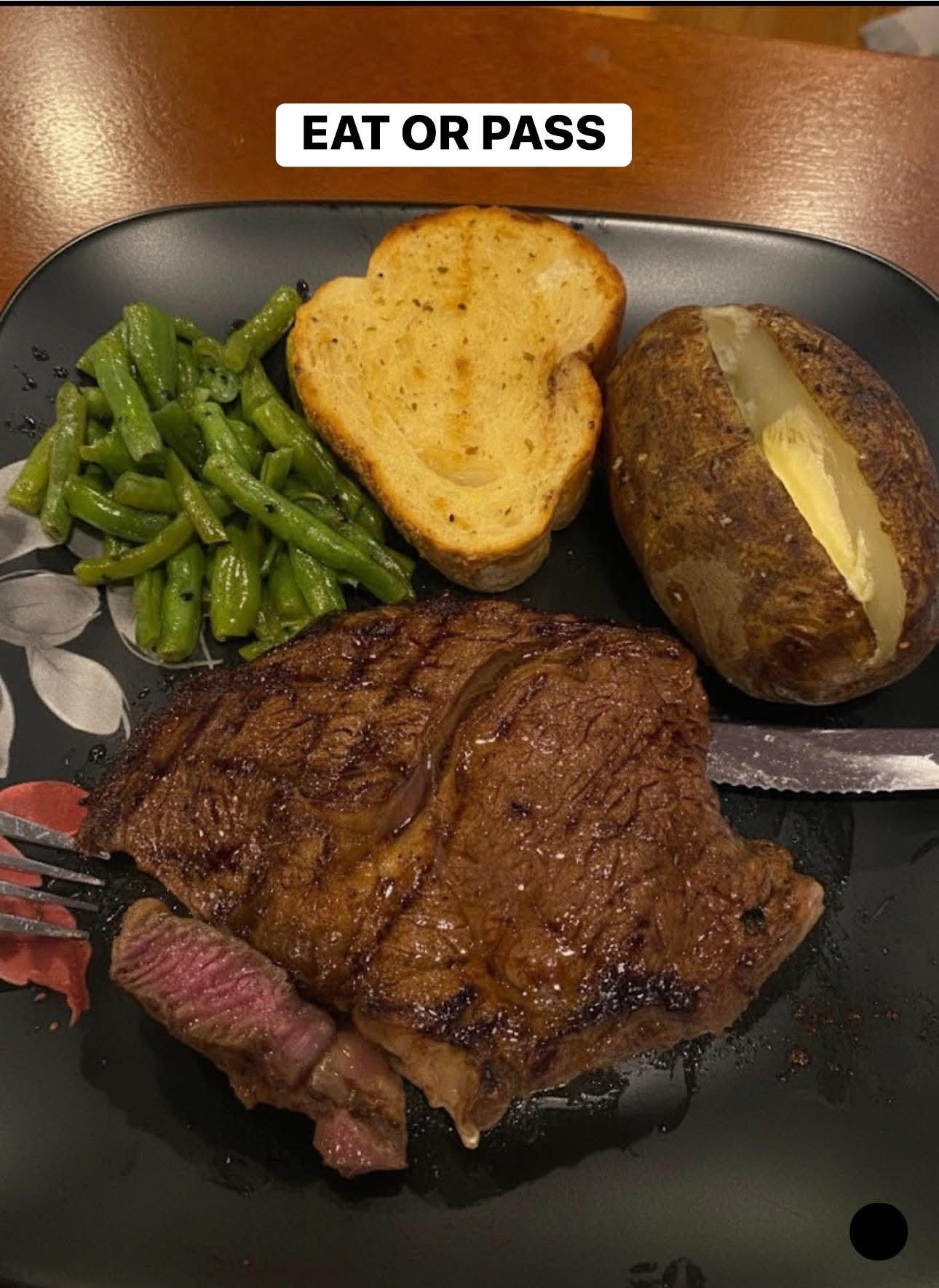 🥩 Grilled Steak with Baked Potato, Garlic Bread & Green Beans