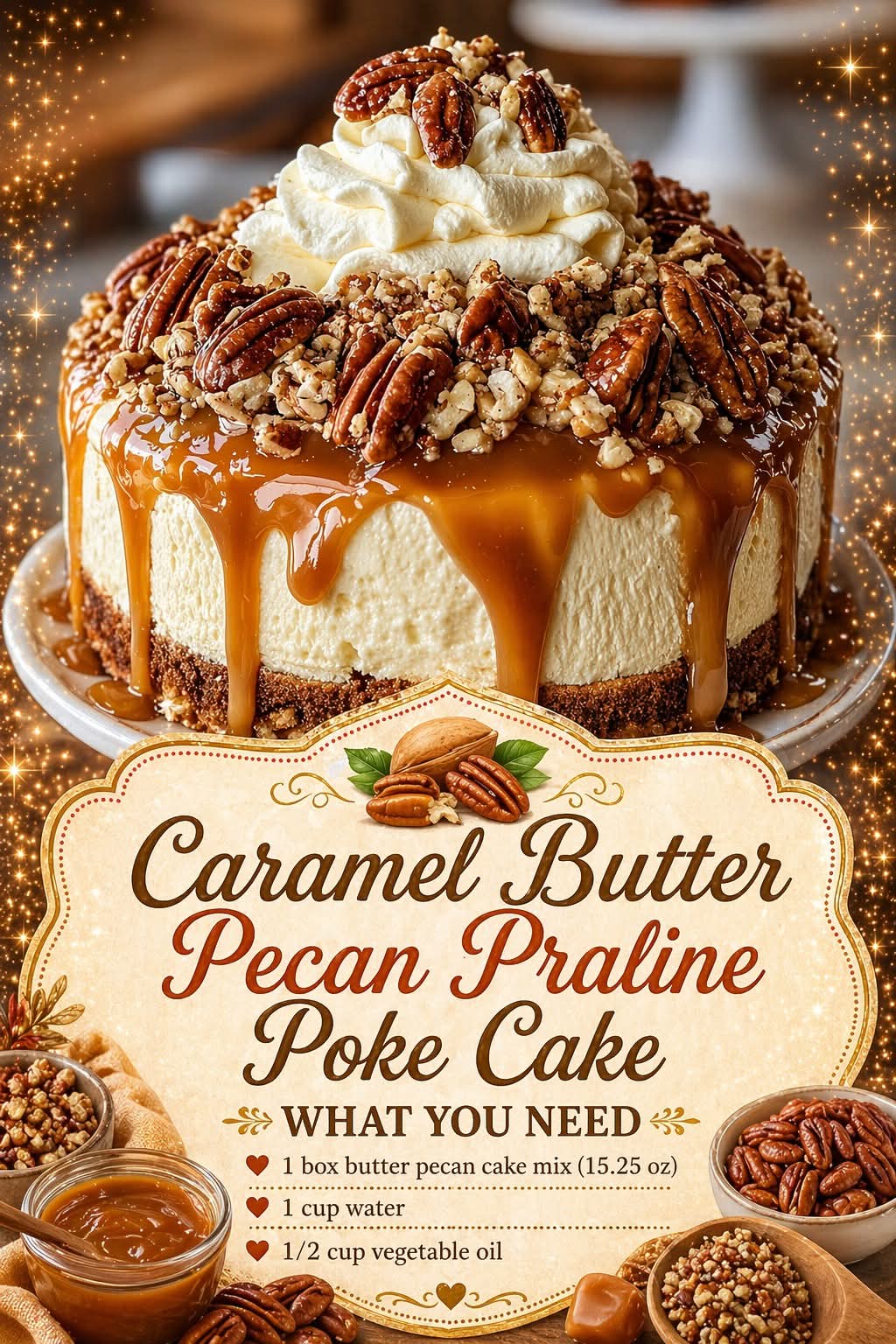 This Caramel Butter Pecan Praline Poke Cake is more than just a dessert—it’s a full experience of comfort, sweetness, and indulgence. Whether you’re making it for a celebration or a cozy night at home, it’s guaranteed to impress and satisfy every sweet tooth.