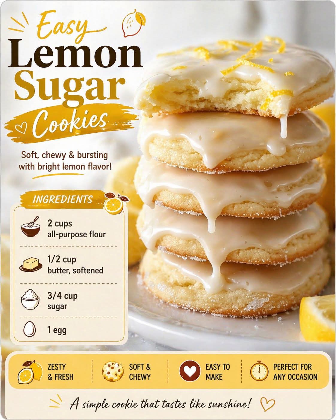 These easy lemon sugar cookies are proof that simple ingredients can create something truly special. With their soft texture and zesty flavor, they’re a go-to recipe you’ll want to make again and again. Whether shared with loved ones or enjoyed quietly with a cup of tea, they always deliver a little moment of joy.