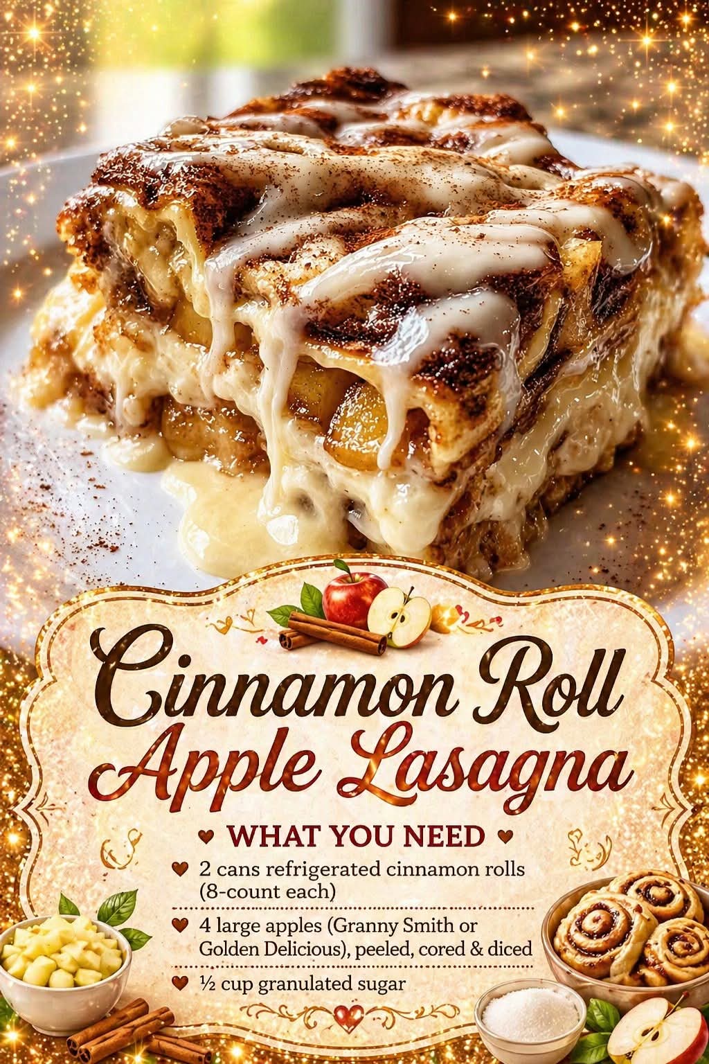 🍎✨ Cinnamon Roll Apple Lasagna
