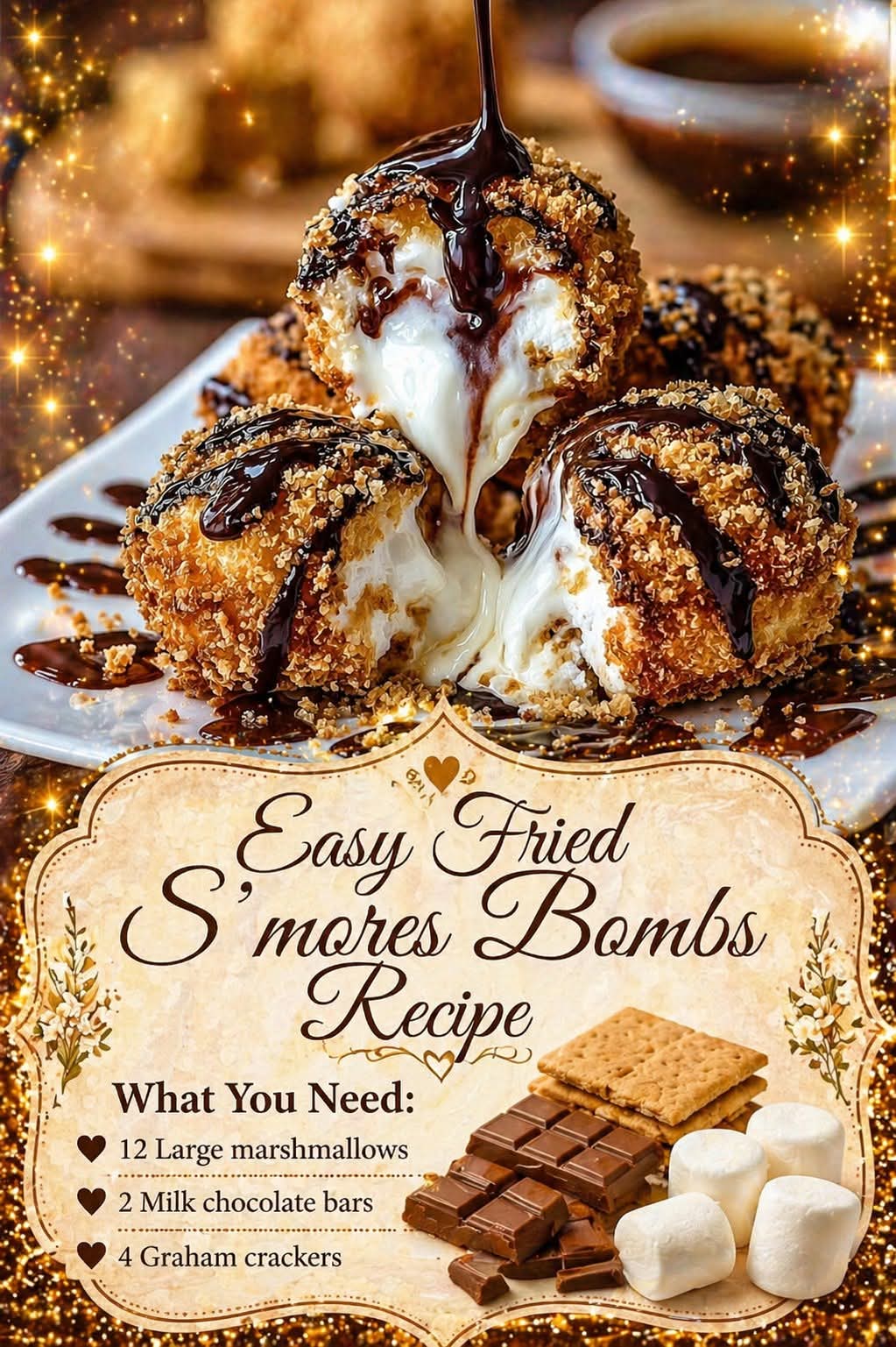 Here’s your full, rich, and indulgent recipe for Easy Fried S’mores Bombs—crispy outside, gooey inside, and absolutely irresistible 🍫🔥