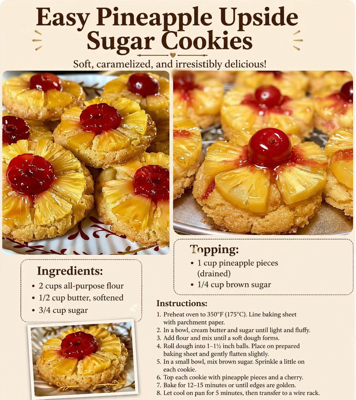 🍍🍪✨ Yummy Easy Pineapple Upside Sugar Cookies — Soft, Caramelized & Irresistible
