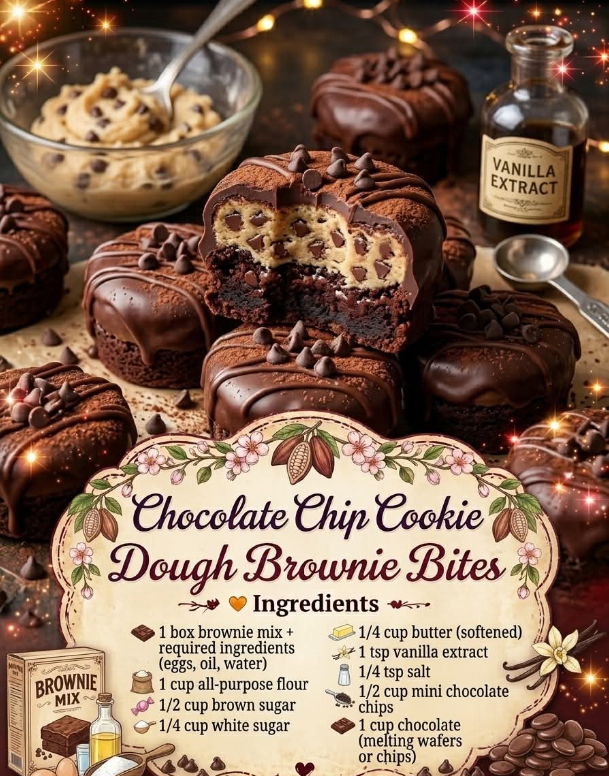 🍫 Chocolate Chip Cookie Dough Brownie Bites