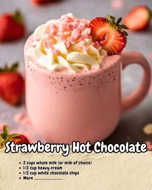A sweet, creamy twist on classic hot chocolate, blending rich white chocolate with fruity strawberry flavor for a cozy drink that feels like dessert in a cup.