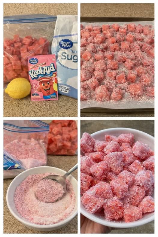 Tangy Frozen Watermelon with Kool-Aid is a simple yet exciting way to upgrade everyday fruit into something unforgettable. It’s quick, affordable, and packed with bold flavor—perfect for cooling off and satisfying cravings at the same time. Once you try it, you’ll keep coming back for that irresistible tangy-sweet crunch!