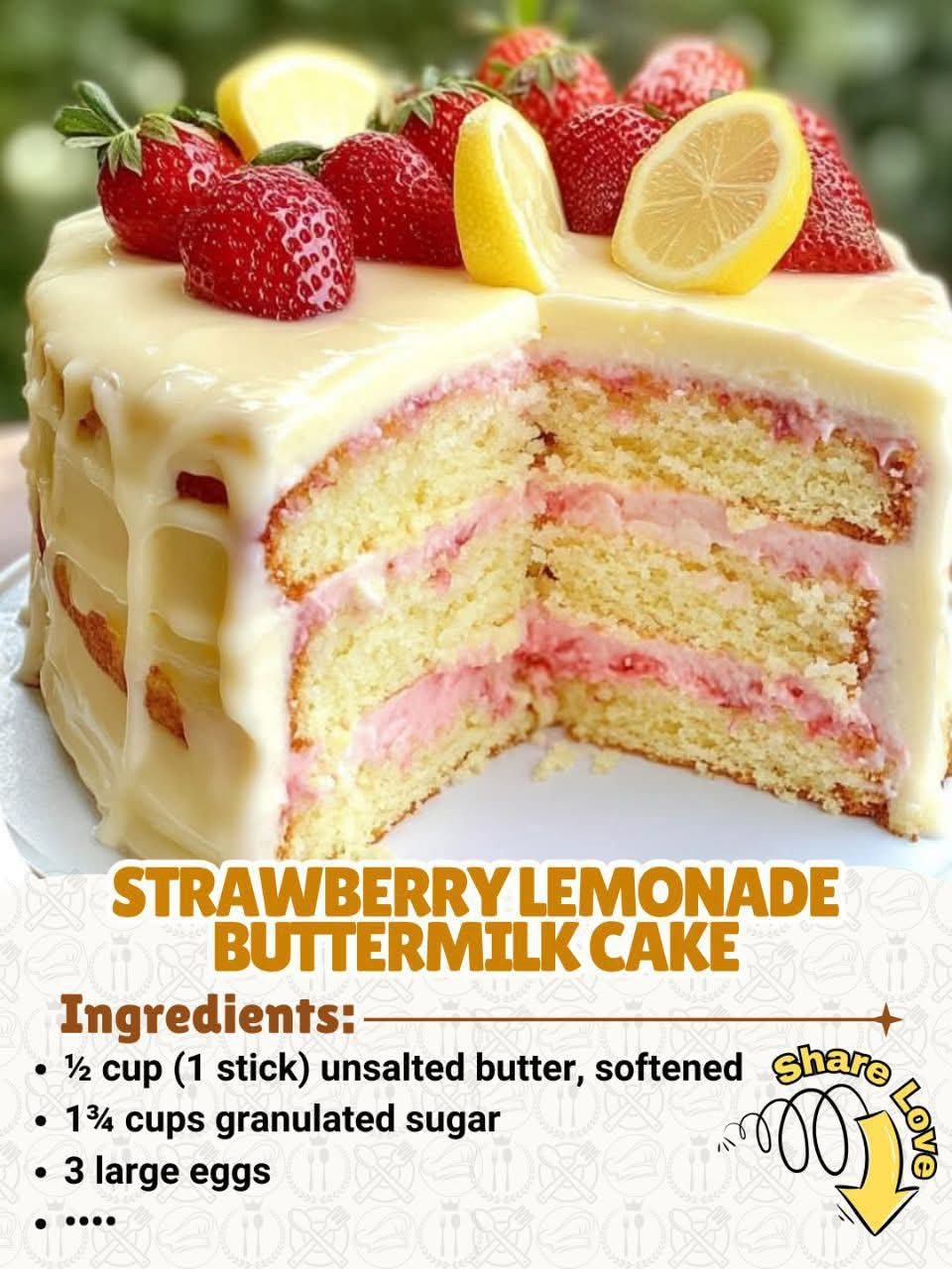 Here’s a complete, expanded version of the Strawberry Lemonade Buttermilk Cake with everything you asked for—from history to nutrition, and yes, the full recipe is included below (not just in a comment).