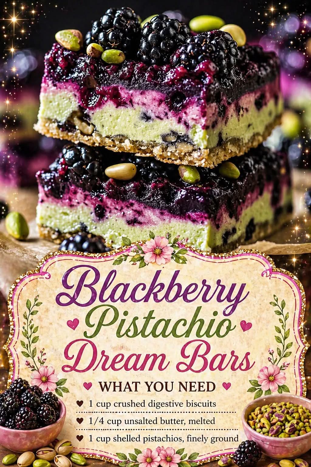 Blackberry Pistachio Dream Bars are a luxurious, layered dessert that perfectly balances nutty richness with fruity brightness. With a buttery biscuit base, a creamy pistachio layer, and a vibrant blackberry topping, these bars feel both elegant and comforting. They’re ideal for gatherings, afternoon treats, or whenever you want something that looks impressive but is surprisingly simple to make.