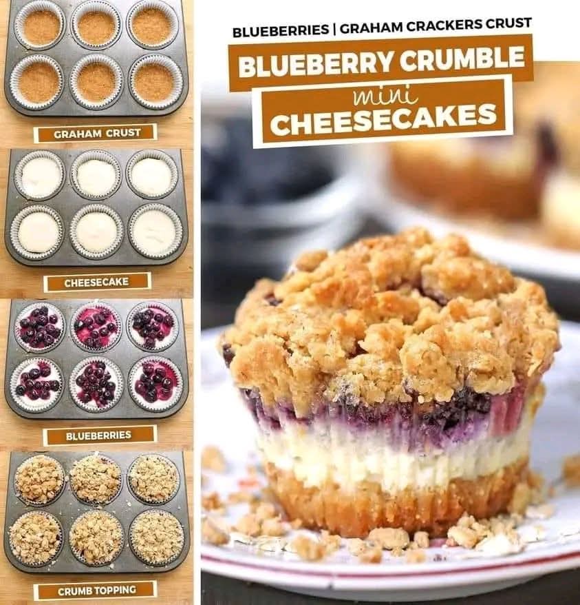 🫐 Blueberry Crumble Mini Cheesecakes 🧁✨
