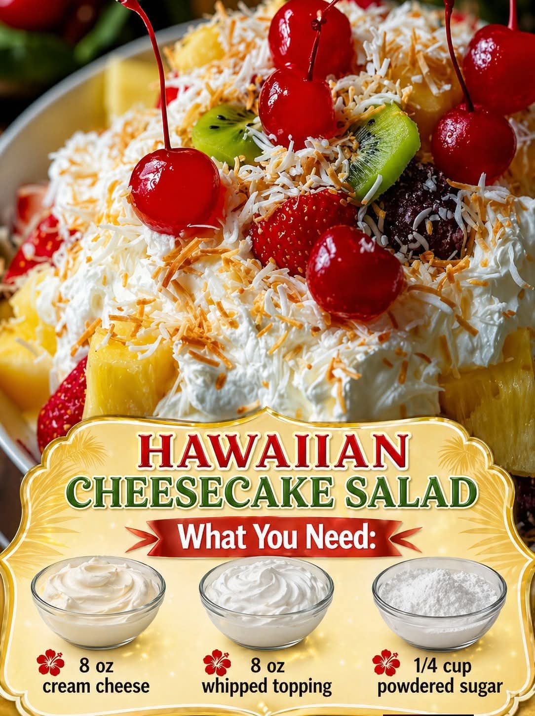 Hawaiian Cheesecake Salad is more than just a dessert—it’s a celebration bowl of creamy sweetness and tropical freshness. It combines simplicity with indulgence, making it perfect for any occasion, from casual family dinners to festive gatherings. With just a few ingredients and no baking required, it delivers maximum flavor with minimal effort.