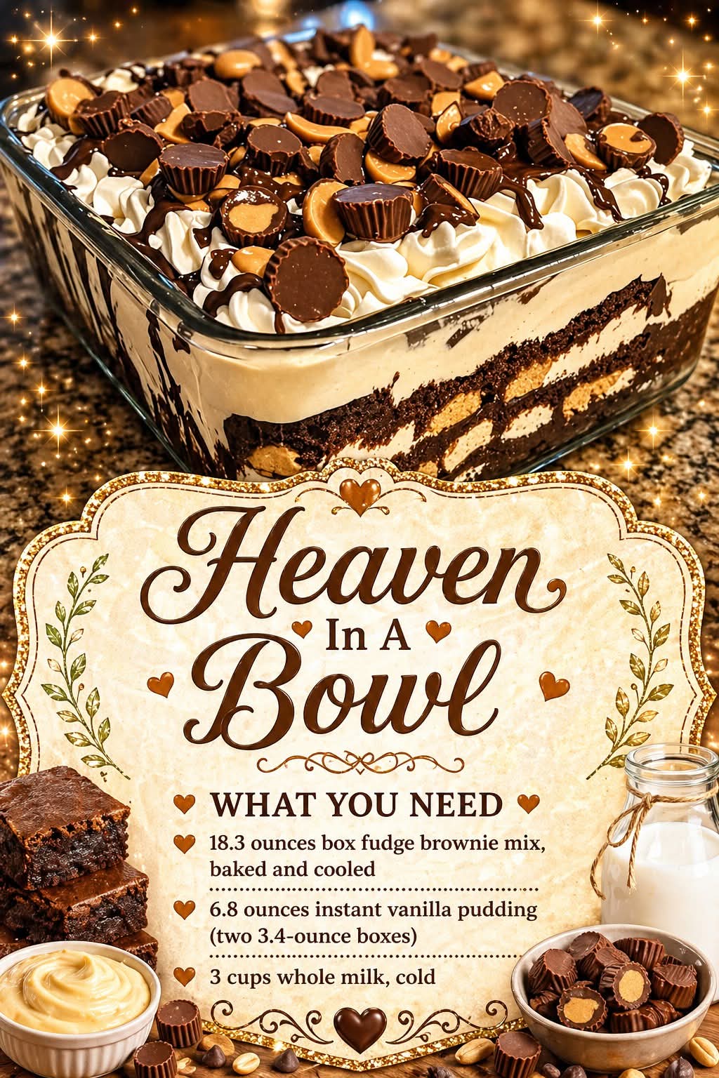 “Heaven in a Bowl” is one of those irresistible desserts that lives up to its name. It’s rich, creamy, chocolatey, and layered with indulgence in every bite. This no-fuss dessert combines fudgy brownies, silky vanilla pudding, and fluffy textures into a show-stopping treat that looks elegant but is surprisingly easy to make. Perfect for parties, family gatherings, or when you simply want something comforting and sweet.