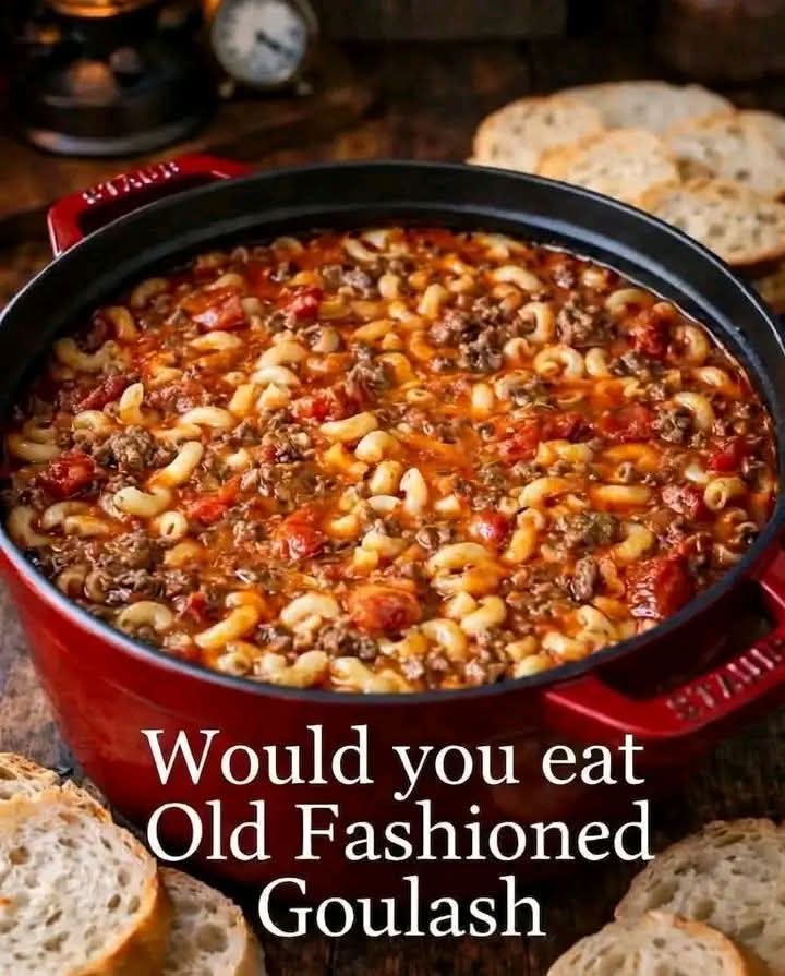 Old Fashioned Goulash is a true comfort-food classic that has been loved for generations. Despite sharing a name with Hungarian goulash, the American version is a cozy one-pot dish made with ground beef, tomatoes, pasta, and simple seasonings. It became especially popular in home kitchens during the mid-20th century because it was affordable, filling, and easy to make in large batches.