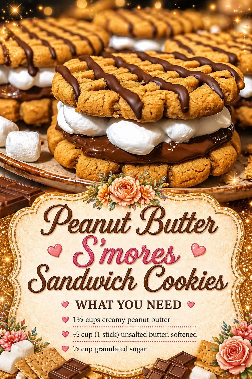 Imagine everything you love about a classic campfire s’more—gooey marshmallows, melty chocolate, and that nostalgic sweetness—combined with rich, nutty peanut butter cookies. These sandwich cookies take inspiration from the traditional , but elevate them into a decadent bakery-style treat. Perfect for parties, gifting, or simply indulging at home, they deliver a soft, chewy bite with a creamy, melty center that feels both comforting and luxurious.